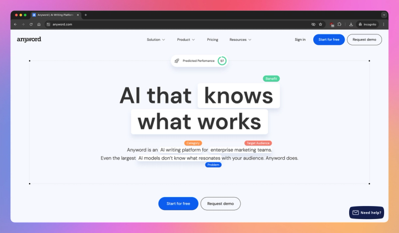 | Anyword | Predicting Copy Performance | Predictive copy performance scores. | Premium plans for advanced features. |