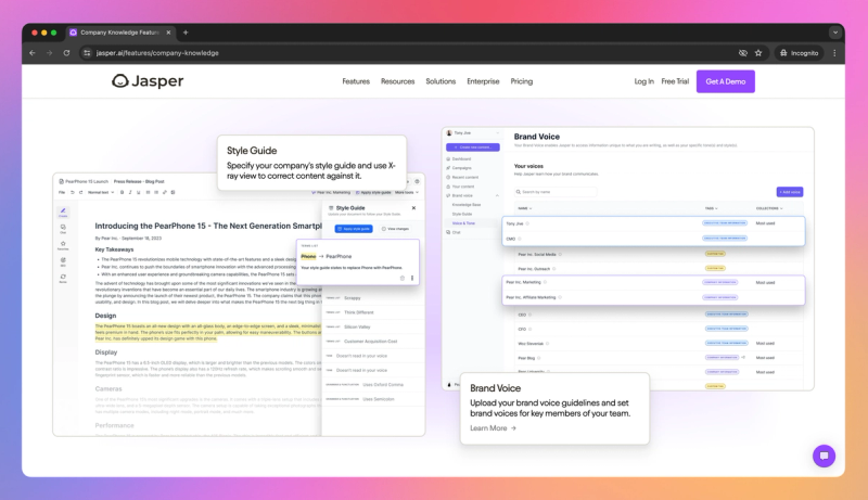 | Japser | Maintaining Brand Voice | Customizable Brand Voice profiles. | Plans scale based on usage/features. |