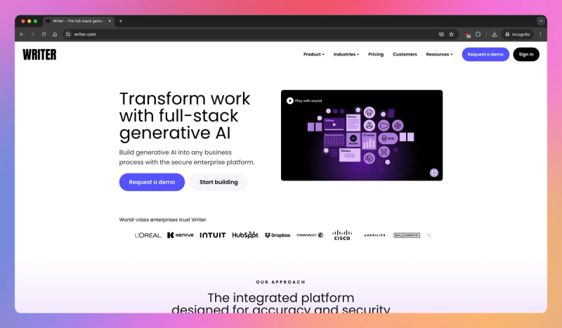 Writer is a comprehensive generative AI platform specifically designed for businesses, especially mid-size to enterprise organizations that prioritize control, security, and brand consistency in their content. It functions as more than just a generator; it's a full writing assistant integrating into workflows, enforcing style guides, and leveraging internal company knowledge through custom-trained AI models and a Knowledge Graph feature connected to internal data sources. This platform emphasizes robust admin controls, data privacy (claiming customer data isn't used for external model training), and compliance features like SOC 2, SSO, and options for private deployment, aiming to provide AI capabilities that meet stringent corporate IT and legal standards. Its goal is to empower teams across an organization to produce content that is consistently accurate, on-brand, and compliant.