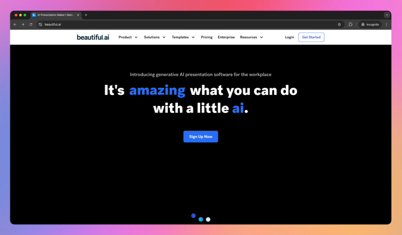 With Beautiful AI, you can create professional, polished slide decks with minimal effort. Its core value proposition is design without the designer - the tool automatically enforces good design principles like alignment, spacing, and color harmony as you add content, ensuring every slide looks expertly designed. With recently added generative features, it can even assist in writing content or suggesting imagery. The platform is strategically positioned as a smarter alternative to traditional slide software, especially for teams wanting to save time on formatting and achieve uniform, branded presentations. By using smart templates and AI-driven layouts, it aims to eliminate the drudgery of fiddling with text boxes and visuals, providing the quickest path to a great-looking presentation for business users prioritizing speed and consistency.