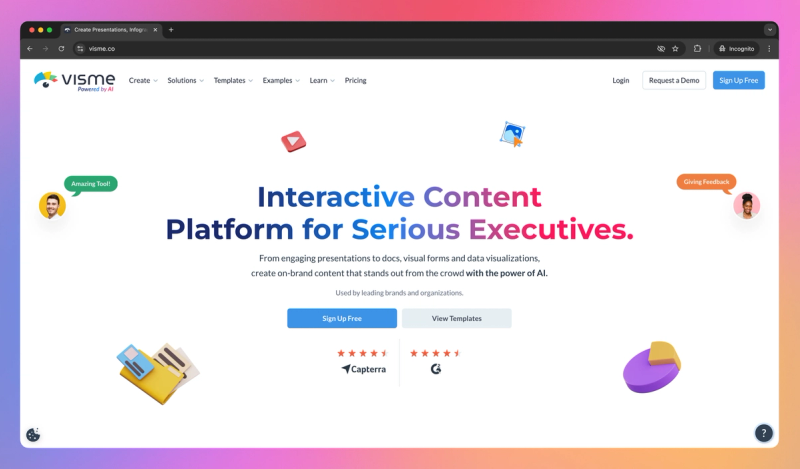 - Versatile Platform: Visme offers a wide array of tools beyond just presentations, covering infographics, documents, and charts, making it a comprehensive solution for various visual communication needs.