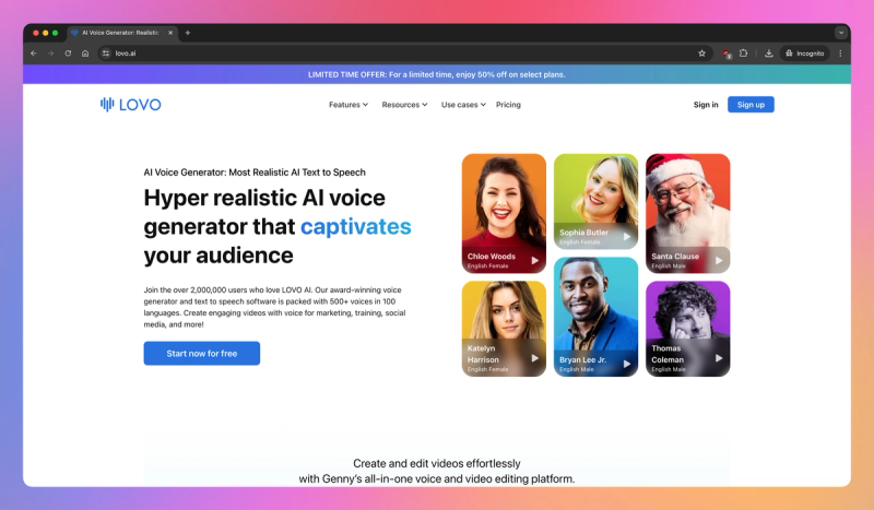 LOVO AI, recently rebranded as Genny, is an AI voice generator and content creation platform that has gained a strong following. Initially known for its high-quality TTS voices, LOVO expanded Genny into a one-stop solution that includes video generation as well – but at its core, the voice synthesis remains a highlight. LOVO offers 400+ voices in 100+ languages, claiming very natural and emotionally expressive AI voices. It also provides a suite of tools like a content editor (to combine voice with visuals) and even basic video editing/timeline features. Essentially, LOVO/Genny is bridging the gap between pure voice generators and video creation platforms, making it appealing for creators who want to produce complete multimedia content with AI voices.