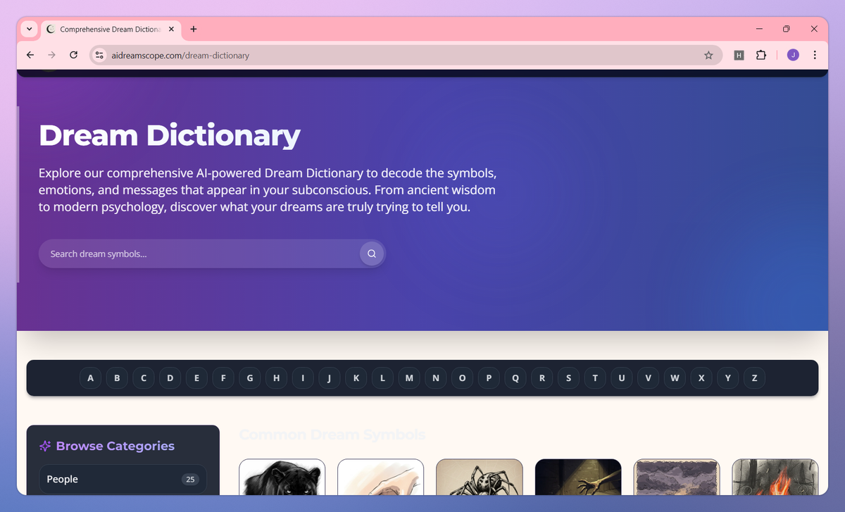 - Access a database of over 10,000 dream symbols with interpretations from psychological, cultural, and spiritual perspectives.