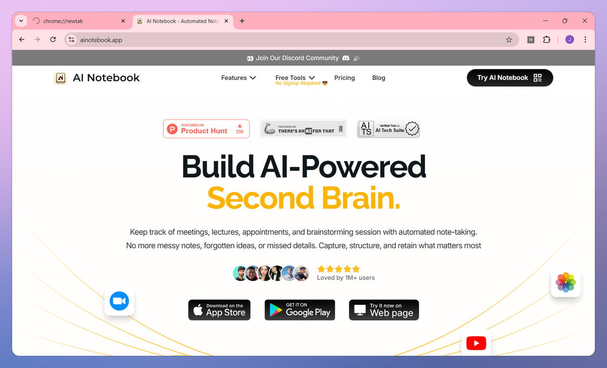 AI Notebook is an automated note-taking assistant that converts spoken lectures, meetings, and appointments into organized digital notes. It transcribes audio recordings, extracts text from images, processes PDF documents, and creates structured study materials like flashcards and summaries to help students and professionals capture and retain important information without manual note-taking.