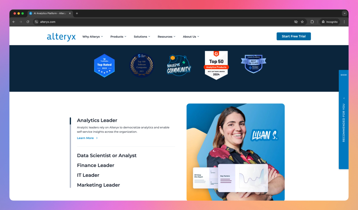 Alteryx distinguishes itself by empowering data analysts to connect and blend complex datasets from numerous sources without writing code. The platform's workflow automation speeds up repetitive tasks like data cleansing and joining tables, freeing up analysts to focus on extracting insights. Data scientists can take advantage of Alteryx's built-in AI and machine learning tools to quickly build predictive models and uncover patterns in their data.