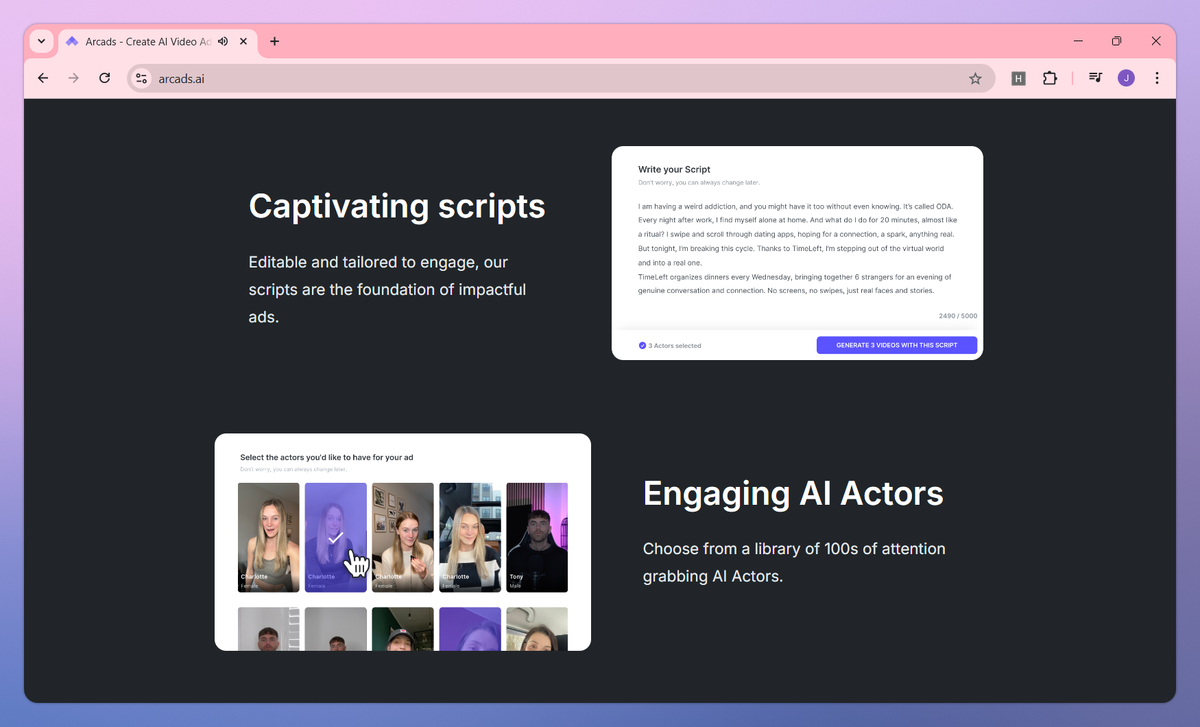 Arcads sets itself apart with its batch creation system that allows marketers to test hundreds of ad variations in a single campaign. This natural lip-sync technology gives AI actors authentic speech patterns and realistic expressions, making ads more credible to viewers. The platform shines for marketing teams who need to target specific demographic groups with customized messaging across multiple channels at once.