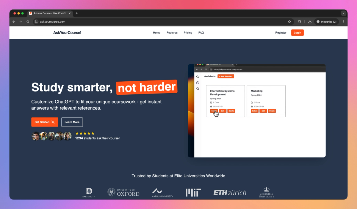 Ask Your Course stands out with its course-specific AI assistant, which analyzes uploaded materials to create a tailored knowledge base for each student's unique curriculum. This personalized approach proves valuable for both students tackling complex subjects and educators seeking to provide additional support outside the classroom. By bridging the gap between traditional learning methods and AI technology, Ask Your Course offers a fresh perspective on academic support.