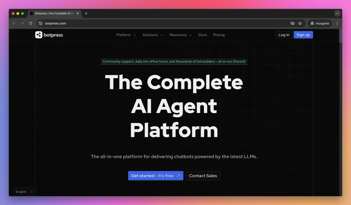 Botpress is an AI agent platform that allows businesses to build chatbots for customer service, sales, and other workflows. Marketing teams use it to create conversational AI agents that can answer product questions, qualify leads, and book sales meetings.