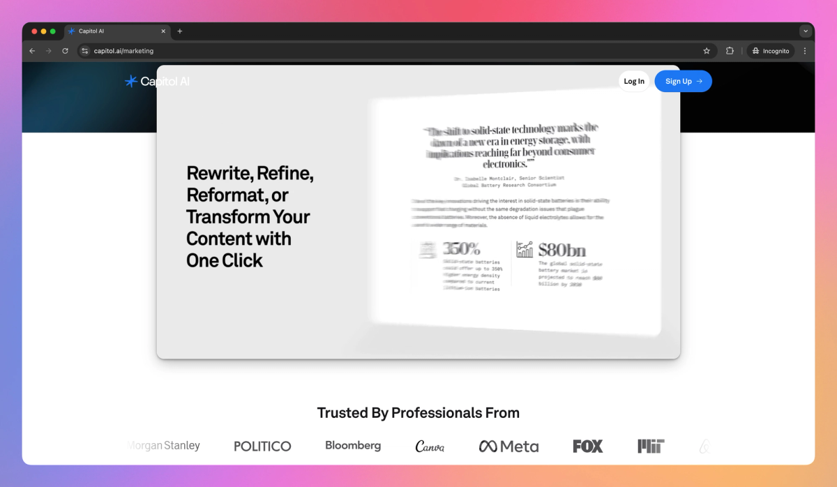 Capitol AI sets itself apart with its custom language models that help financial analysts and business strategists turn complex market data into clear action plans. This business-first approach proves beneficial for management teams who need to spot market trends and develop strategic responses. The platform bridges the gap between raw business data and practical strategy, giving decision-makers a clearer path to success.