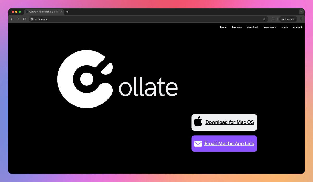 Collate is a Mac-based PDF management tool that reads, highlights, and analyzes documents without internet connection. This offline assistant lets researchers, students, and business professionals summarize lengthy PDFs, ask specific questions about their content, and store their documents in organized collections while keeping all data on their local machine.