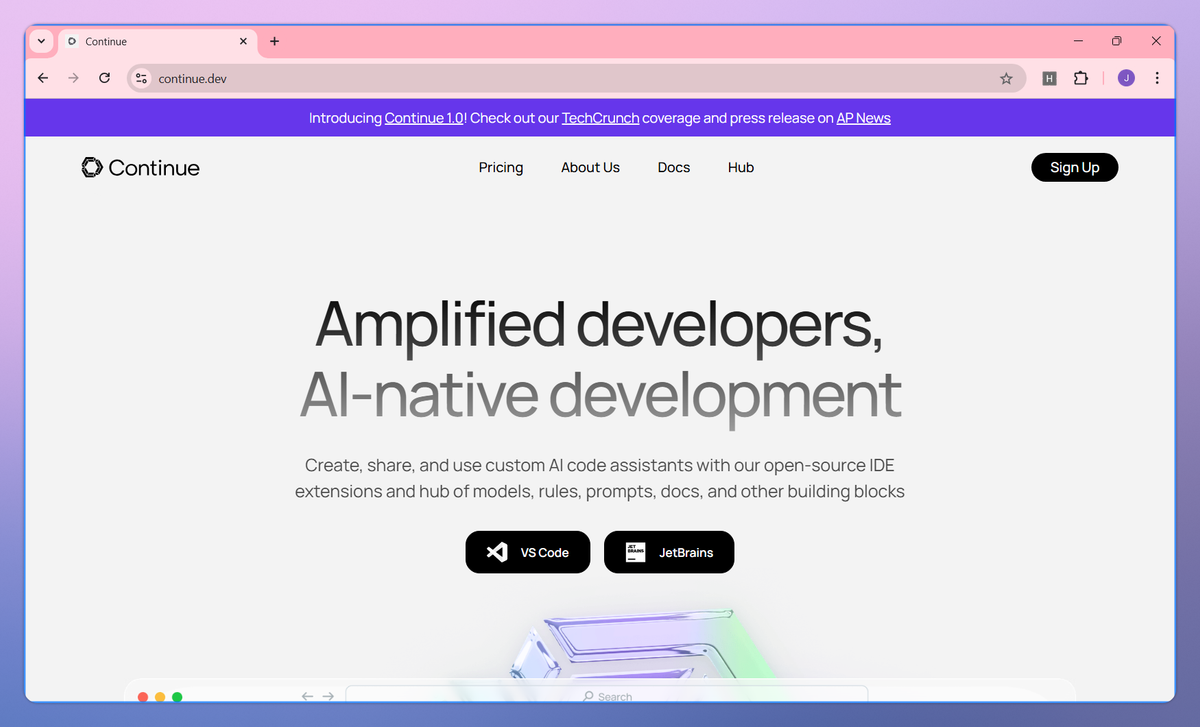 Continue is an open-source AI code assistant that integrates with VS Code and JetBrains IDEs. It provides inline code suggestions as you type, helps understand existing code through contextual chat, and allows direct code modifications without leaving your current file, giving developers the ability to build and share custom AI coding assistants for their specific programming environments.