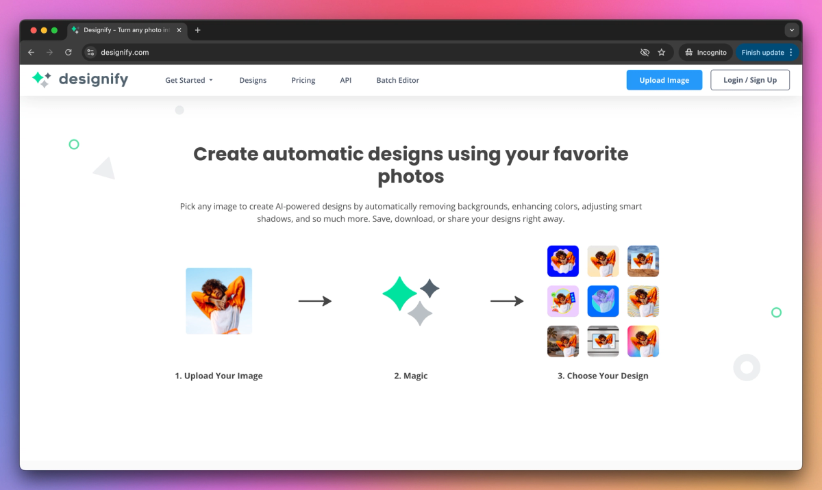 Designify sets itself apart with its fully customizable design templates that allow brands to add logos and match specific color schemes while maintaining visual consistency. This design personalization system works well for social media managers and clothing retailers who need to maintain brand identity across multiple platforms. Designify saves businesses thousands of dollars compared to traditional photo editing by reducing the need for expensive studio setups and professional photographers.