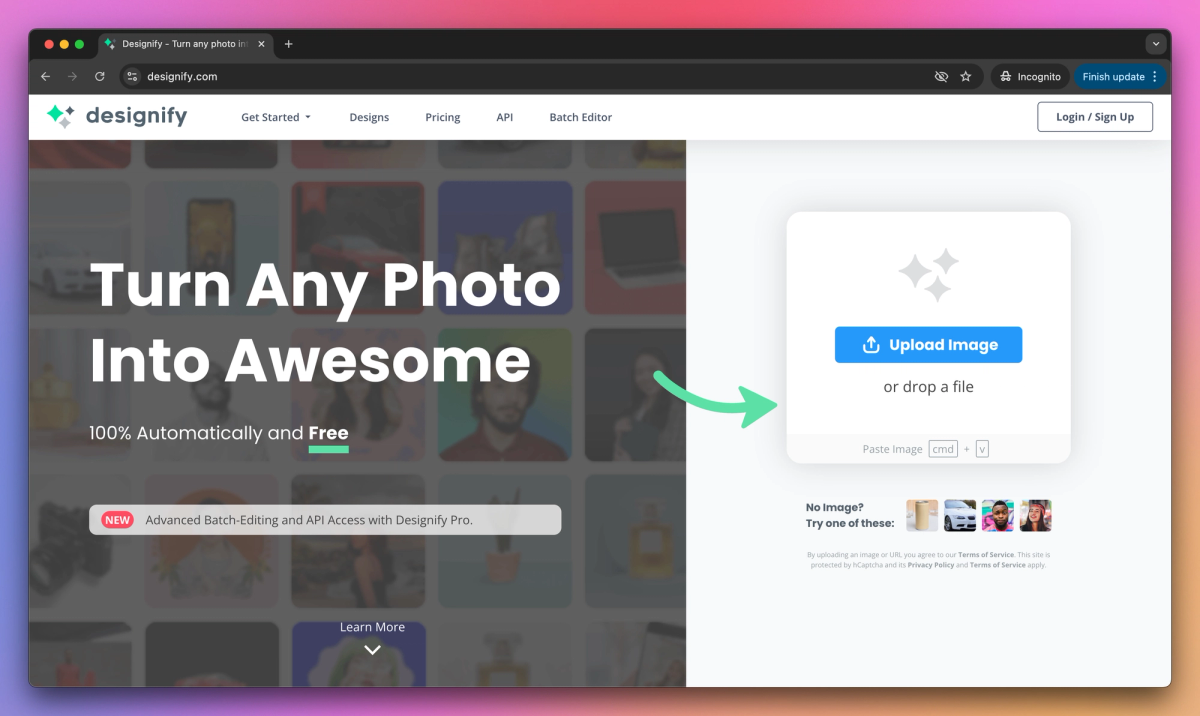 Designify is an AI-powered image editing tool that automatically removes backgrounds, generates professional designs, and processes images in bulk. This tool helps e-commerce sellers, marketers, and automotive businesses create professional-looking photos without studio equipment.