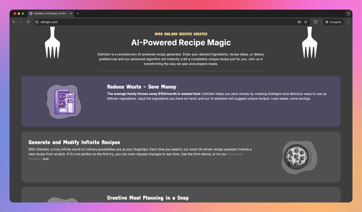 DishGen sets itself apart with its real-time recipe modification feature, allowing home cooks to tweak AI-generated recipes on the fly. This adaptability proves useful for food bloggers looking to put their own spin on dishes, fostering culinary creativity and confidence. By bridging the gap between AI suggestions and personal taste preferences, DishGen offers a fresh approach to cooking that goes beyond simple recipe generation.