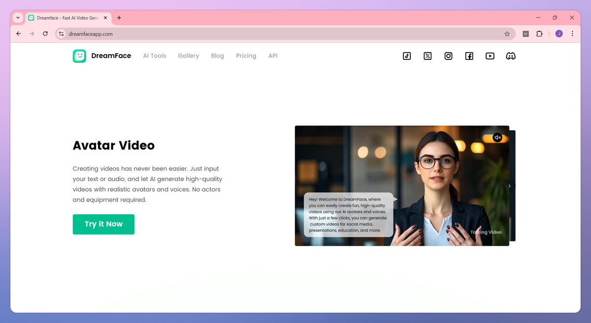 Dreamface is an AI video generation tool that converts static images into animated videos with realistic movements. It creates custom hug animations, talking avatars, and kissing videos to help content creators, marketers, and social media users produce engaging visual content without specialized skills. Users can generate these videos in minutes by simply uploading photos and selecting their preferred effects.