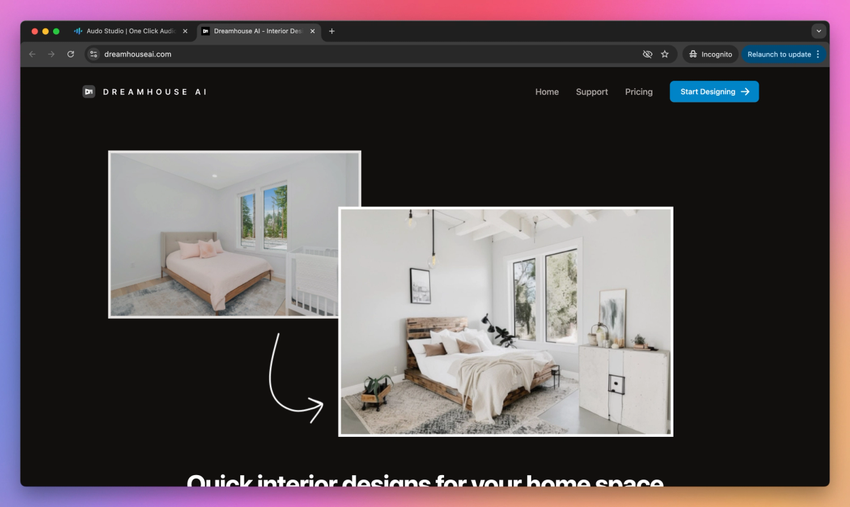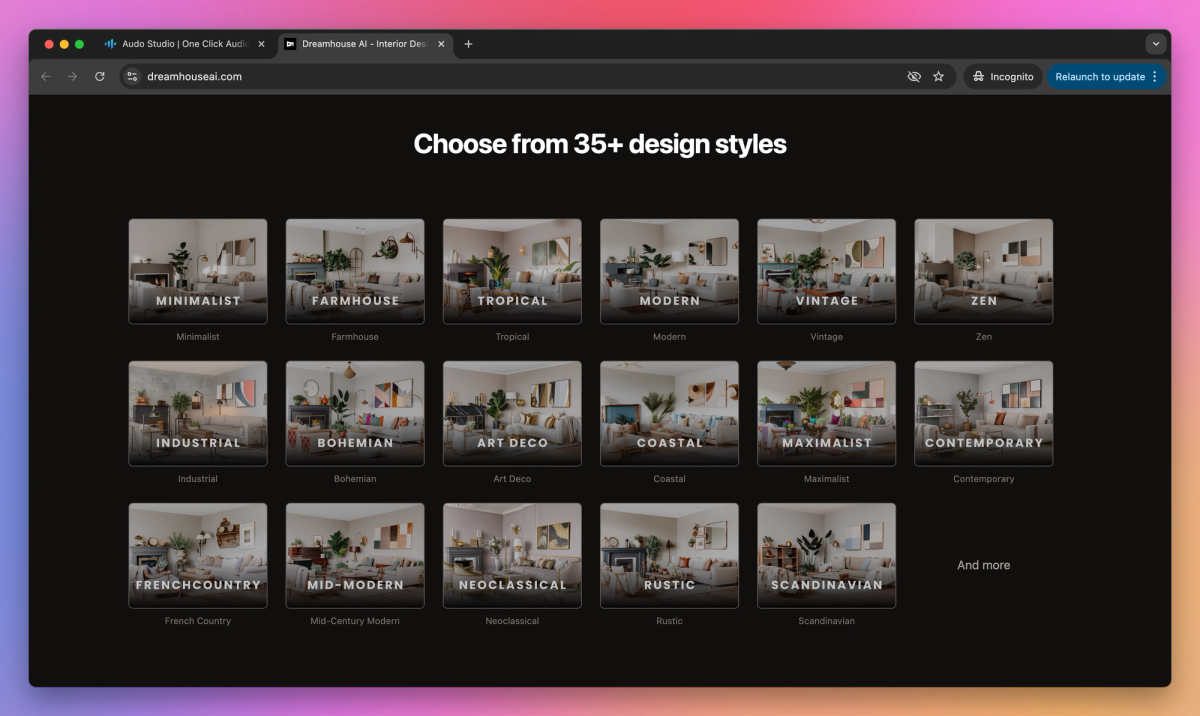 Dreamhouse AI is an interior design and virtual staging system that turns empty spaces into furnished rooms through AI-generated photo-realistic renders. It produces immediate room makeovers in 35+ different styles at $0.05 per design to help realtors, interior designers, and homeowners visualize and plan their space improvements.