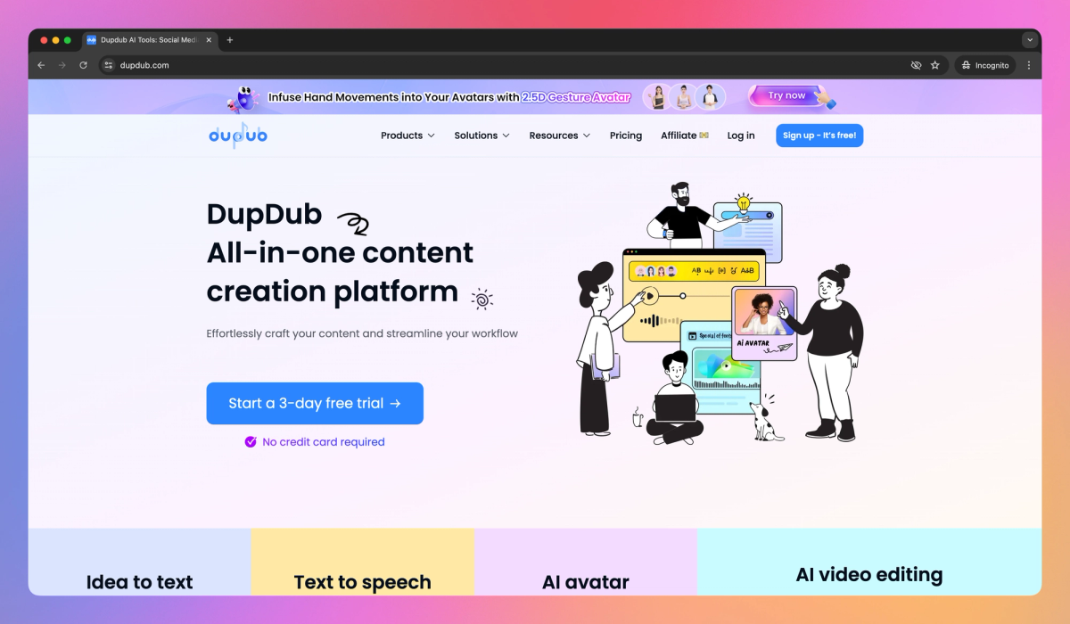 DupDub converts still photos into talking videos and dubs content in over 70 languages and accents. Content creators can produce AI avatars, generate voiceovers, and translate videos for international viewers with this tool.