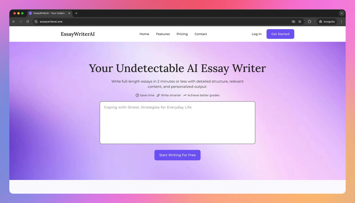 EssayWriterAI is an academic writing tool that generates complete essays in under 2 minutes, matches your personal writing style, and creates citations in APA/MLA formats to help students and international scholars produce original, AI-undetectable academic papers.