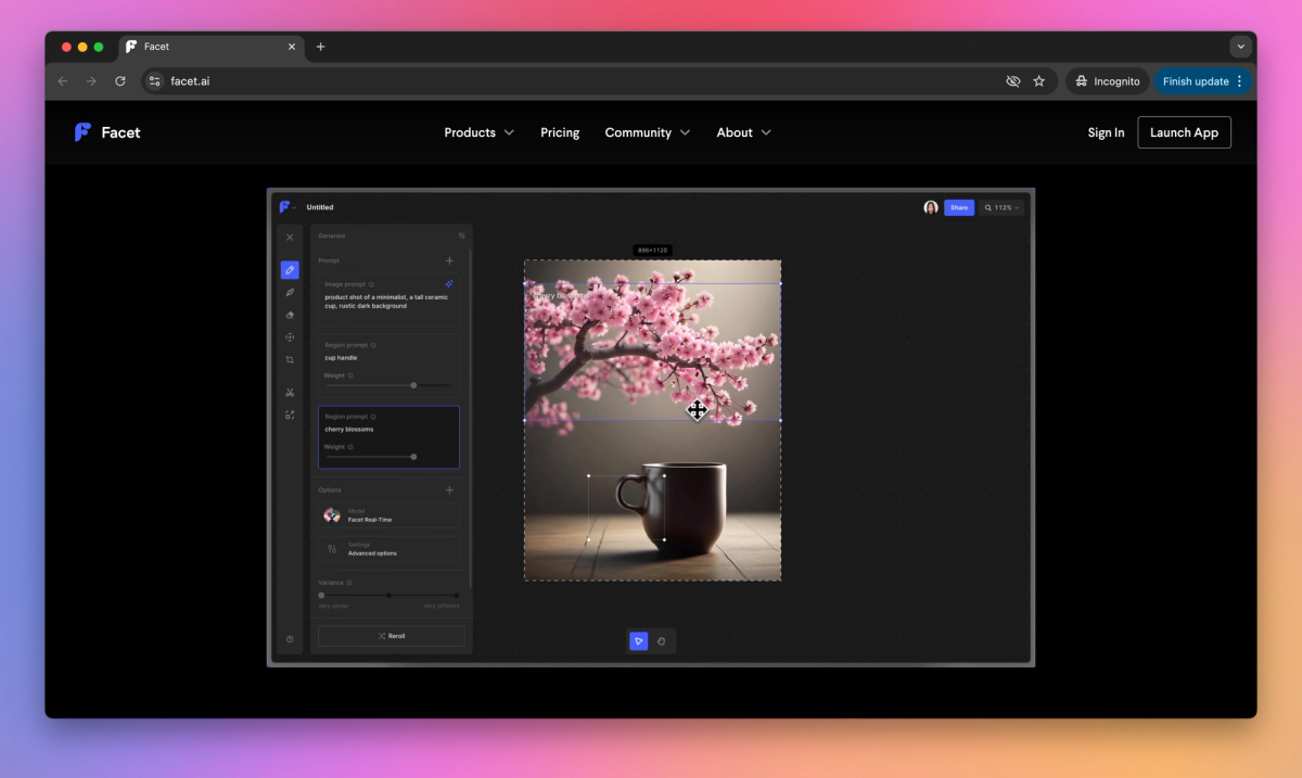 Facet.ai is an AI-powered image generation and editing platform for creative professionals. It offers a Generative Canvas for precise element placement, Custom Models for personalized AI training, and a Photo Editor with real-time collaboration features, all accessible through a browser-based interface.