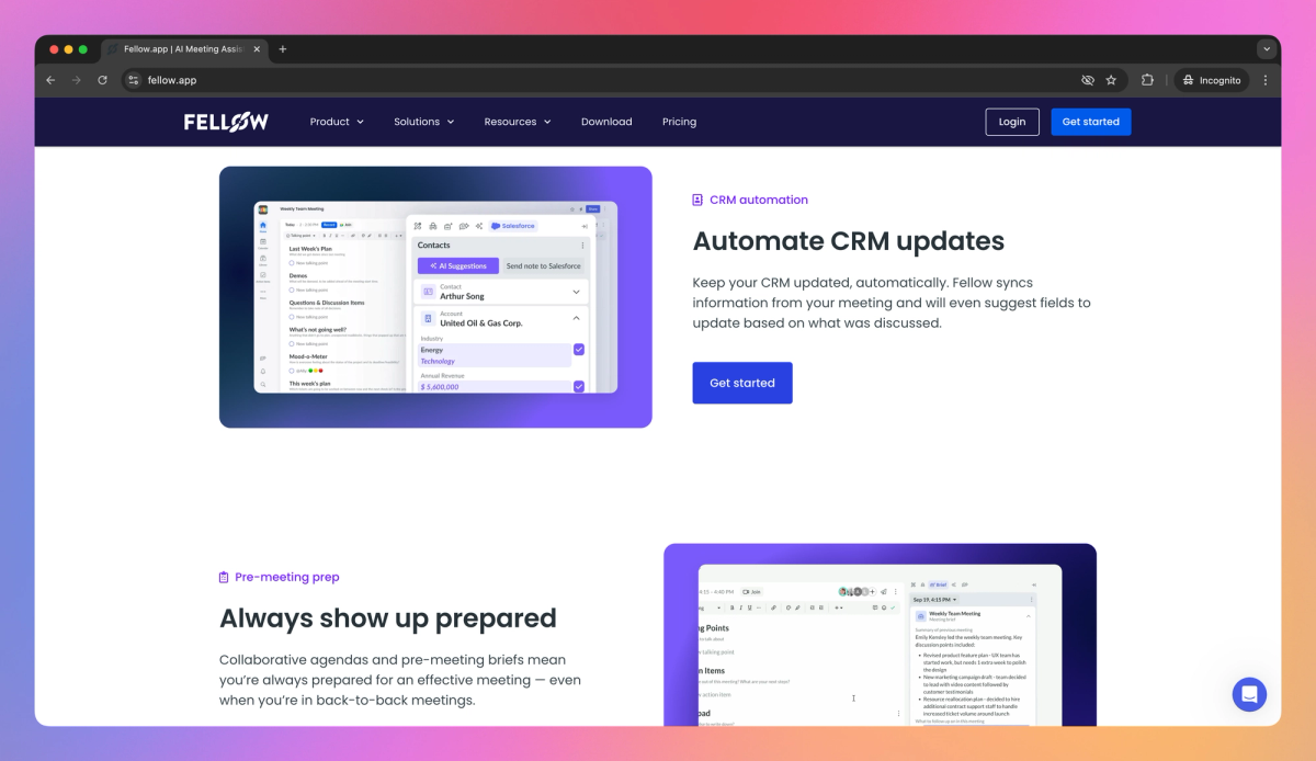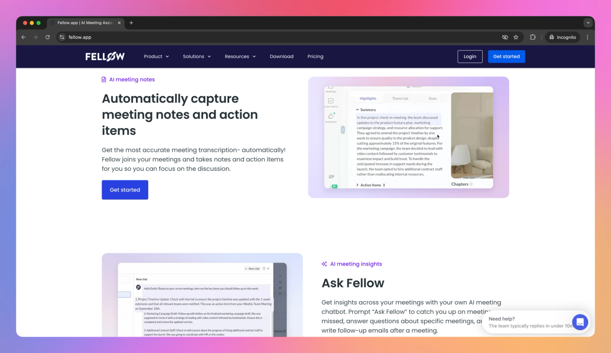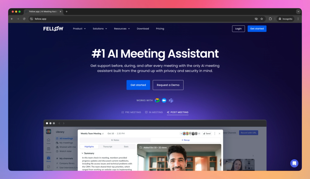 Fellow sets itself apart with privacy-first AI technology that protects your sensitive meeting data through enterprise-level security controls and permissions. The platform's CRM integration automatically updates fields in Salesforce and HubSpot based on meeting discussions, saving sales teams hours of post-call documentation work. Fellow's AI chatbot allows teams to search across all meeting recordings to answer questions about past conversations without reviewing entire transcripts.