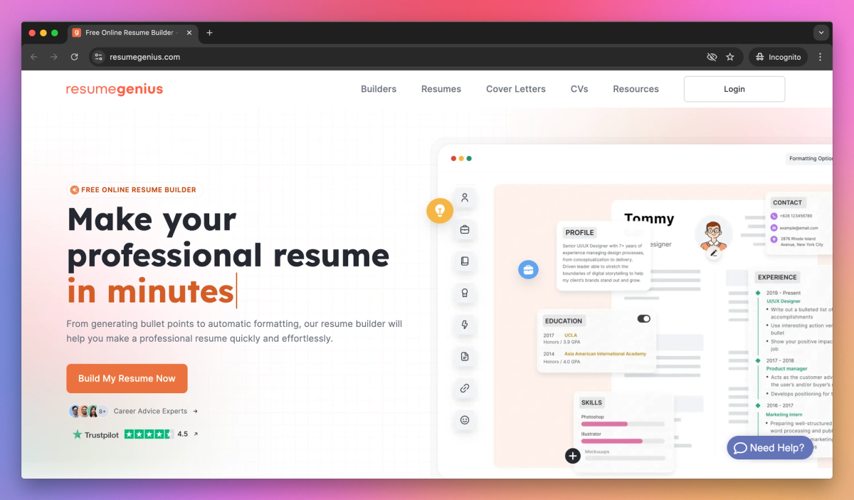 Easy-to-use interface for creating resumes