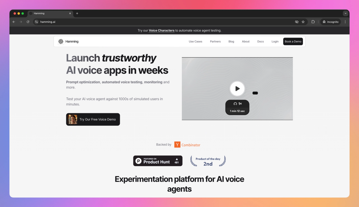 Hamming sets itself apart with its platform-wide approach to voice AI development, featuring built-in prompt management for B2B teams who need different conversational flows for each customer. This collaborative system helps engineering teams and domain experts work together to refine voice agents for high-stakes scenarios like medical appointment scheduling and drive-through order processing. The platform's unique emphasis on active monitoring with LLM judges helps teams catch and fix issues before they impact real customers.
