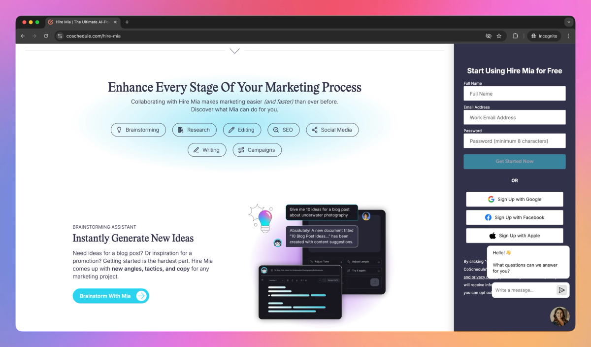 Hire Mia sets itself apart by learning and adapting to each brand's unique voice and style guidelines. Marketers can train the AI on their specific brand elements, ensuring all generated content aligns perfectly with their company's tone and messaging. This personalized approach allows marketing teams to maintain brand consistency across multiple channels while speeding up their content creation process.