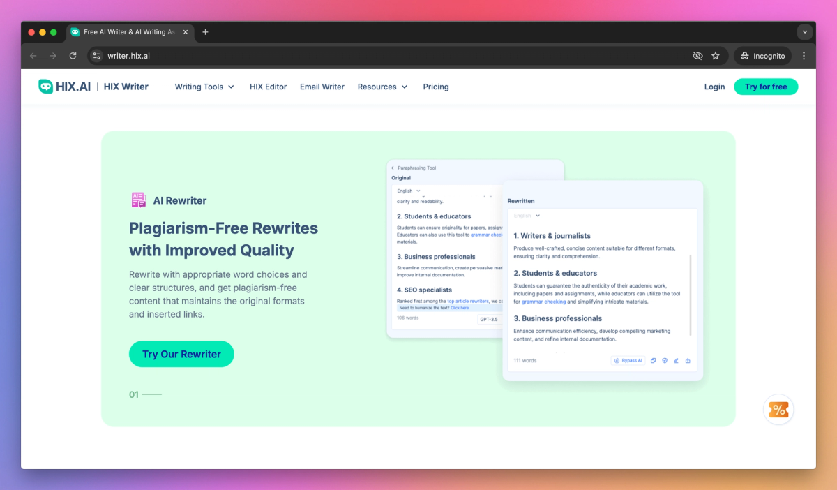 - HIX AI offers over 120 AI-powered writing tools for tasks like paragraph generation, article rewriting, and essay writing.