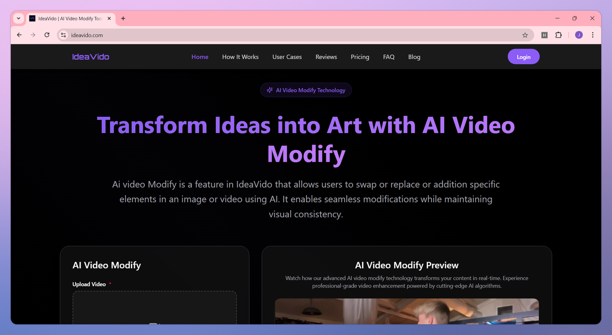 IdeaVido is an AI video modification tool that transforms video editing through text prompts and automated processing. It allows users to swap objects, replace backgrounds, and apply color corrections by simply describing desired changes in natural language. Content creators, marketers, and film students can produce professional video content without manual editing skills or expensive software.