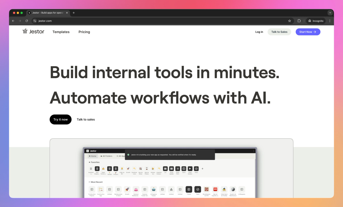 Jestor stands out with its ability to create custom internal tools without coding knowledge, making it ideal for operations managers who need to design specialized apps. This approach allows companies to move beyond generic project management software, giving them the freedom to craft interfaces that match their unique processes. By centralizing data and providing tailored solutions, Jestor helps teams reduce the time spent switching between multiple tools.