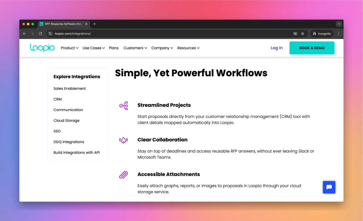 - Connect Loopio with your existing tools like CRM, communication apps, and cloud storage services.