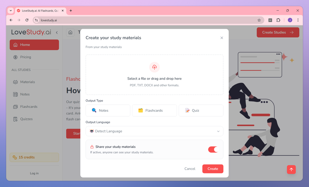 LoveStudy.ai is an AI-powered learning materials management platform for students and educators. It generates interactive flashcards from PDFs, creates custom quizzes from textbooks, and produces organized study notes from lecture recordings to help students memorize information faster and prepare for exams more effectively.