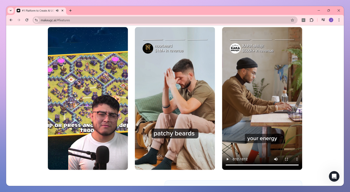 - Produce professional UGC videos in minutes rather than days, significantly reducing content creation time.