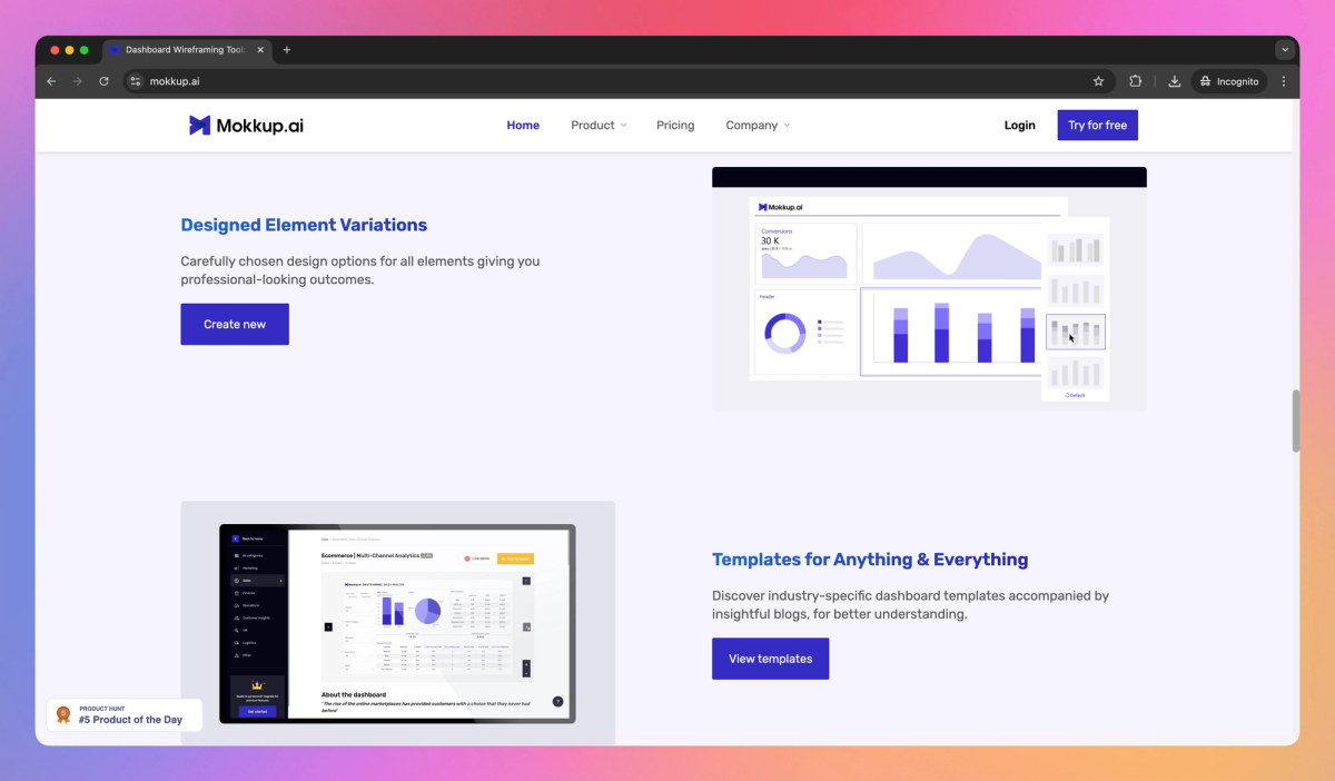 Mokkup AI sets itself apart by enabling data analysts to turn complex datasets into clear visual stories through rapid prototyping. The tool's collaboration features allow BI teams to work together on dashboard designs, speeding up the feedback loop and iteration process. Mokkup AI's extensive customization options give users the flexibility to tailor dashboards to specific business needs, helping companies make data-driven decisions faster.