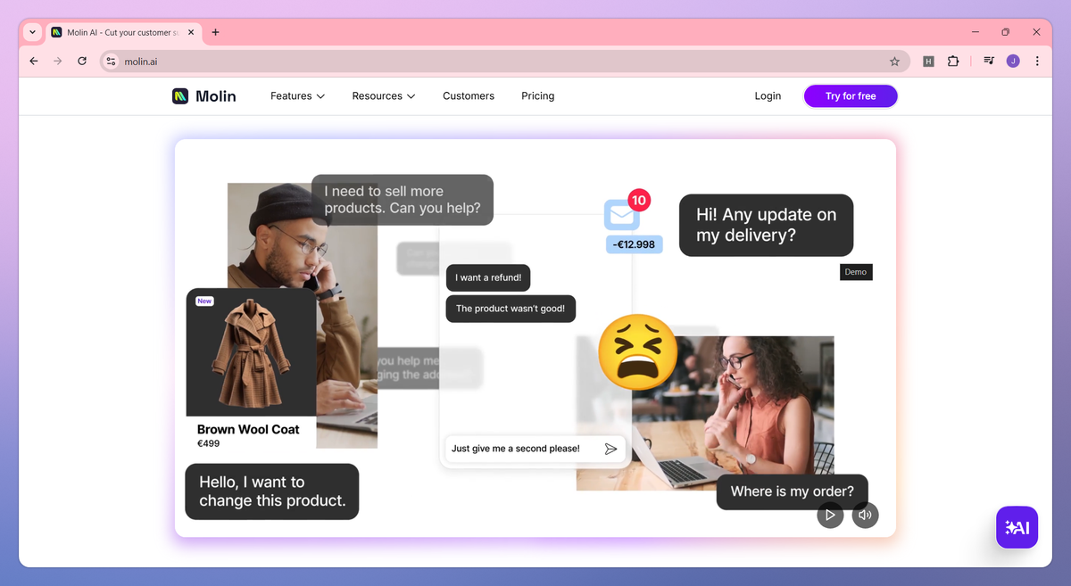 Molin AI sets itself apart with real-time contextual understanding that allows e-commerce businesses to provide personalized customer support across borders without language specialists. This contextual awareness proves particularly valuable for global brands seeking to build customer loyalty through meaningful interactions in the customer's native language. The system's focus on breaking down communication barriers makes it a game-changer for businesses that want to expand their reach to international markets.