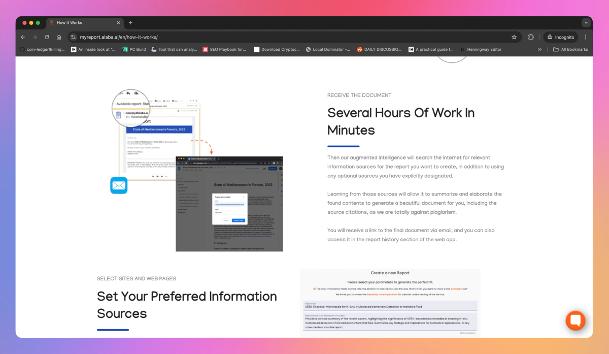 MyReport is an AI-powered report generation tool that creates comprehensive, well-documented documents from simple user inputs. It automatically searches the web for relevant information, processes private documents shared through cloud storage, and formats polished reports with images, tables, and citations to help students, researchers, and business professionals save time on research and writing tasks.