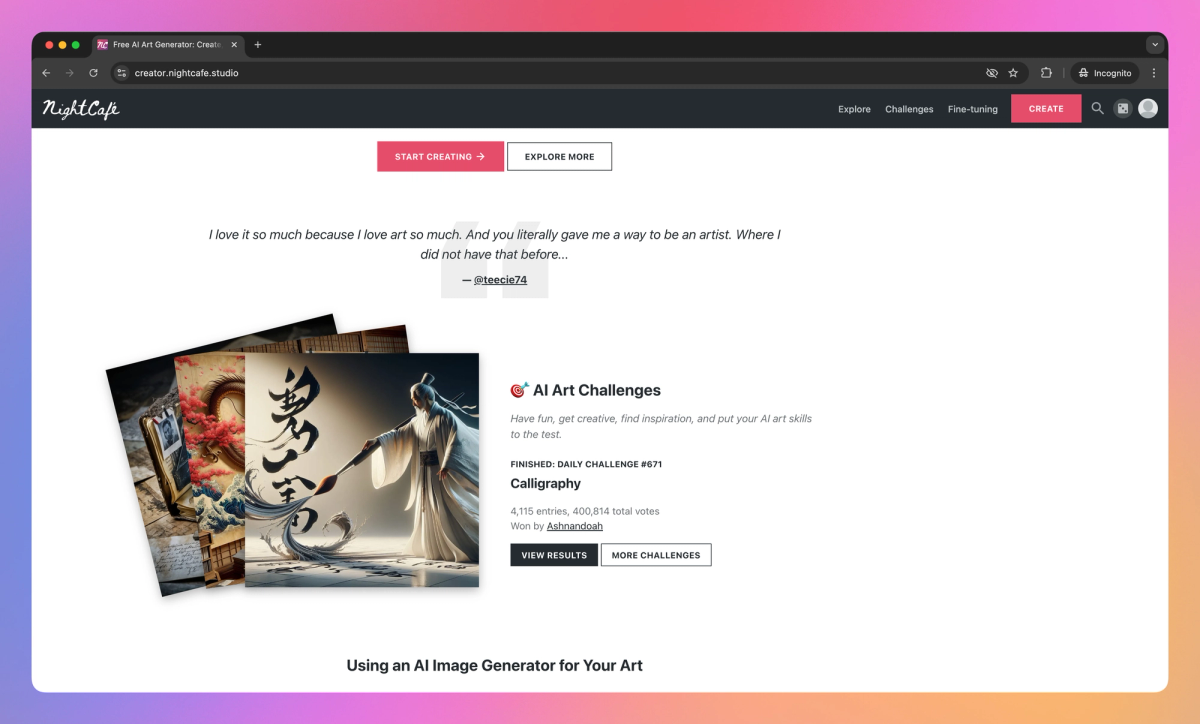 - Participate in daily AI art challenges to test your creativity, compete with other users, and potentially win recognition.