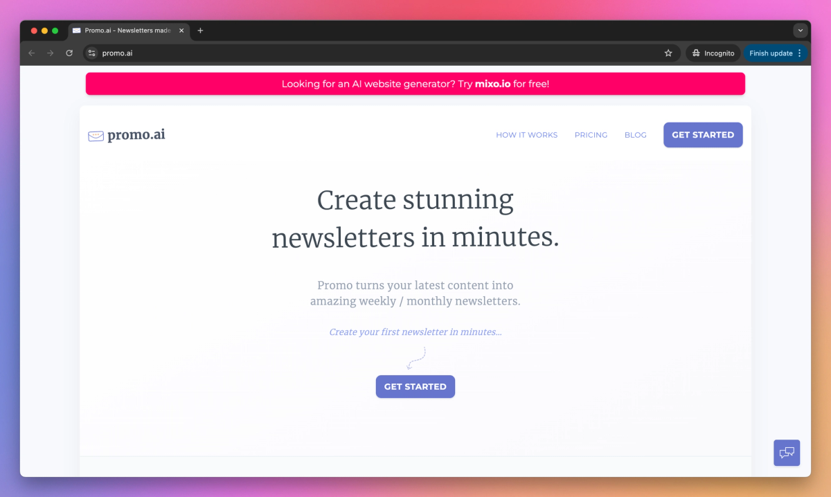 Promo.ai is an AI-powered newsletter generator that turns your website content into engaging emails. It tracks your top-performing articles, automatically selects the right content, and creates customizable newsletters, allowing content creators and marketers to maintain consistent communication with their audience.