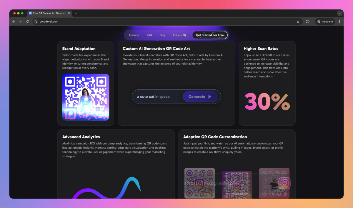 - Generate unique, visually appealing QR codes using advanced AI technology to enhance brand identity and user engagement.