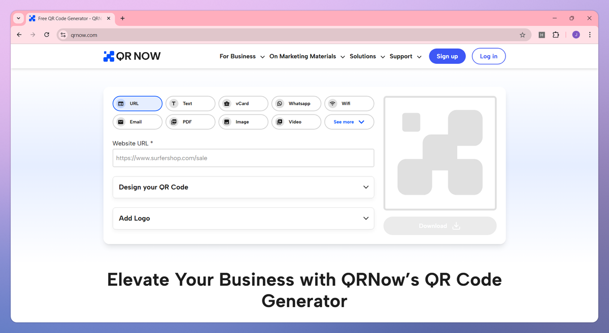 - Create specialized QR codes for websites, vCards, social media, events, PDFs, and more to meet different business needs.