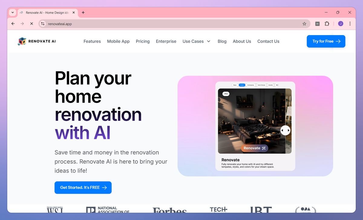 Renovate AI is an AI-powered home design platform that helps users visualize renovation projects before making physical changes. It generates realistic home designs, enables virtual staging, and provides tools for paint color changes to help homeowners, real estate agents, and contractors plan renovations with confidence.