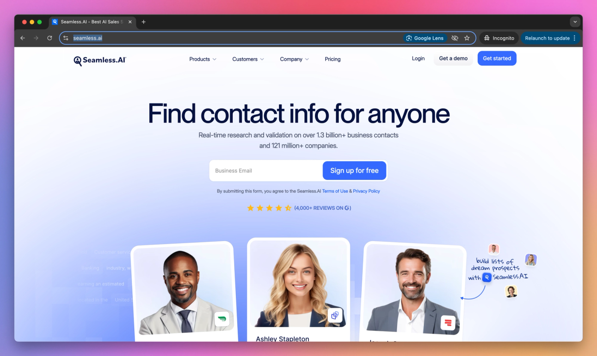 Seamless AI specializes in getting real-time business data straight into HubSpot, Outreach, and other major platforms that B2B organizations use every day. Account executives gain a notable advantage by accessing buying signals and technographic details about target companies before reaching out to prospects. The software's ability to sync with over 6,000 applications sets it apart in the B2B prospecting space.