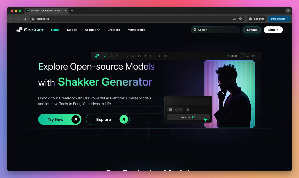 Shakker AI is an AI-powered creative platform that brings ideas to life through generative design. It offers specialized models for illustration, architecture, and logo creation, along with user-friendly tools like the Shakker Generator and Online ComfyUI, allowing graphic designers and marketers to produce custom visuals and optimize their workflow.