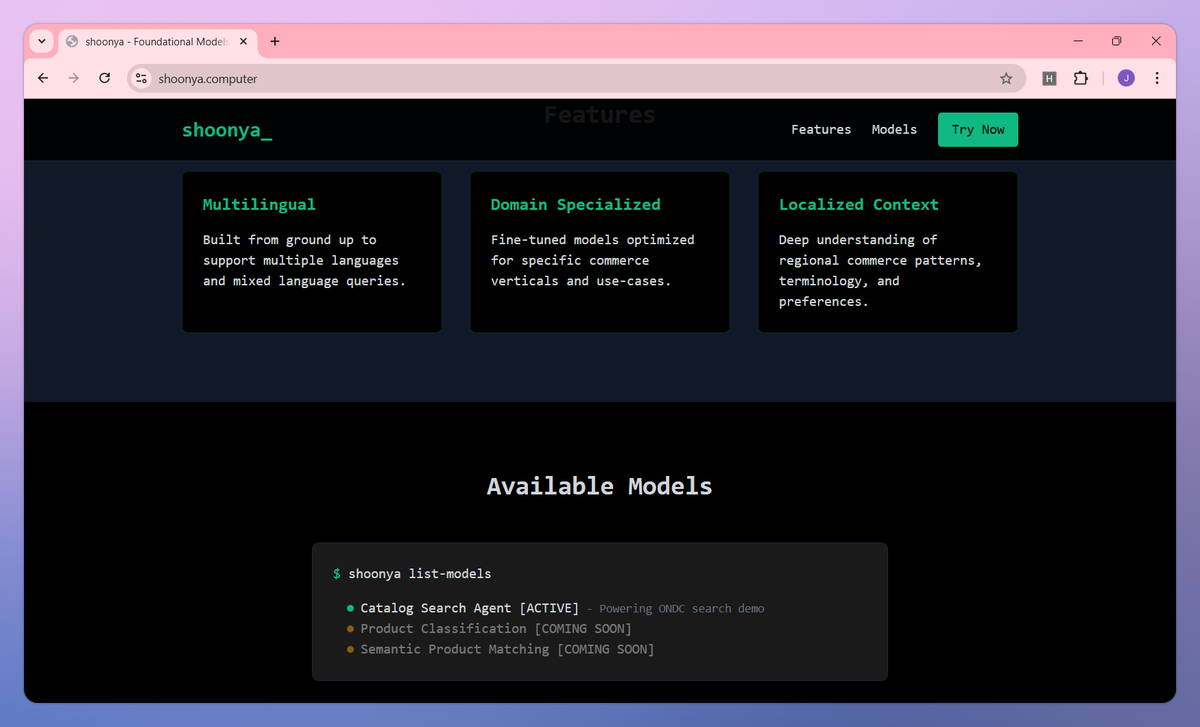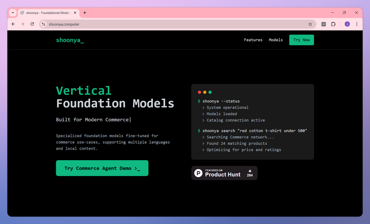 Shoonya is a commerce-focused foundation model suite built specifically for multilingual retail applications. It processes queries in multiple languages including mixed language inputs, delivers specialized results for specific commerce sectors, and interprets regional commerce terminology to help online retailers, marketplace operators, and e-commerce developers connect customers with relevant products across digital commerce networks.