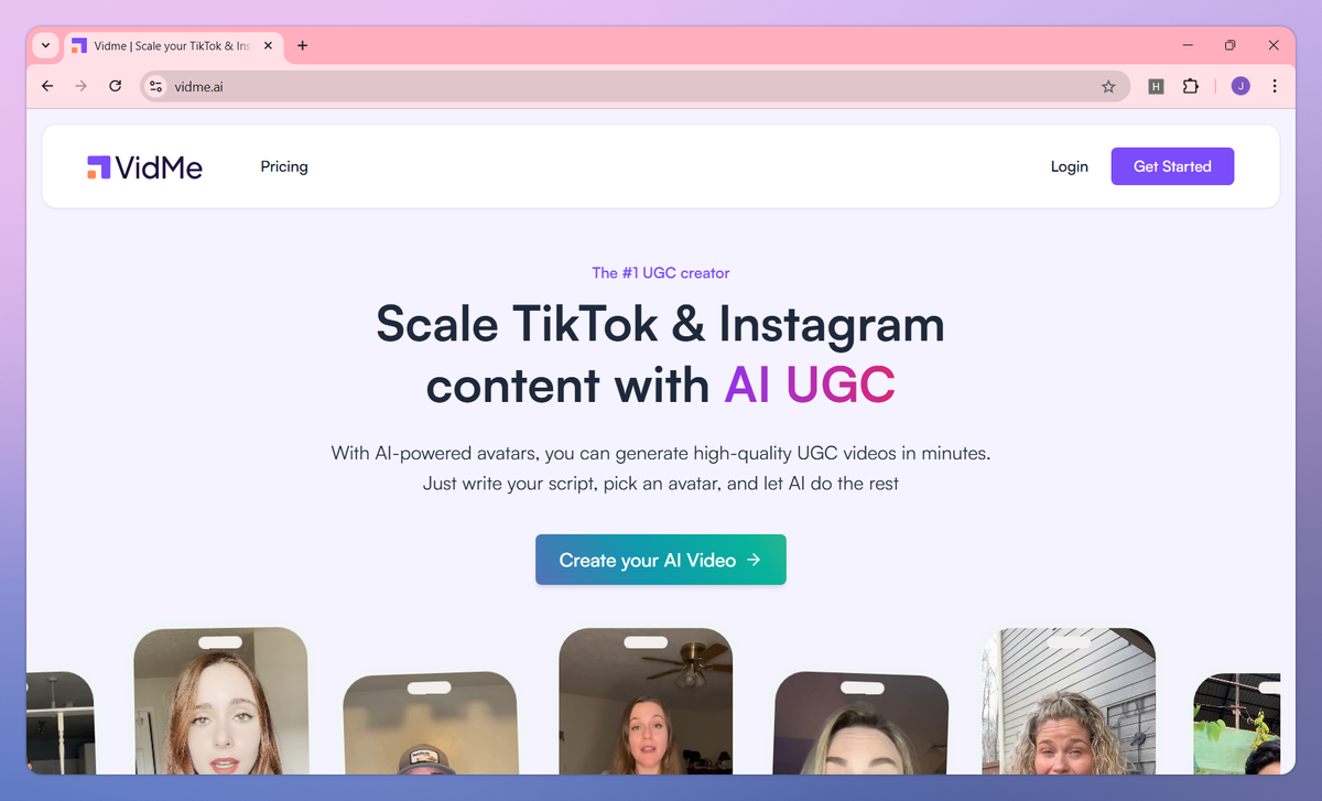 Vidme is an AI video generation platform that turns scripts into UGC-style content for social media. It syncs your message with realistic AI avatars, offers multiple language options, and allows users to create custom avatars, making it valuable for content creators, marketers, and small agency owners.