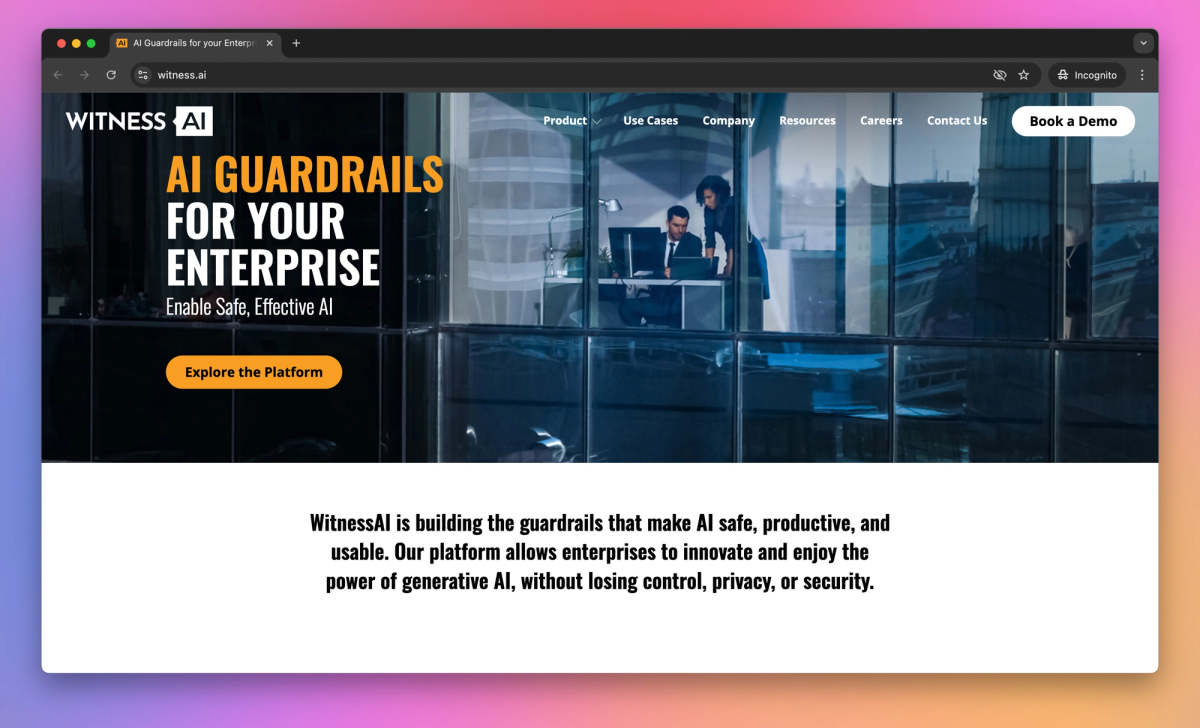 WitnessAI is an AI security platform that gives enterprise CISOs visibility and control over employee AI usage. It monitors AI activity across browsers and native apps, enforces usage policies, and prevents data leaks, enabling organizations to adopt AI tools securely.