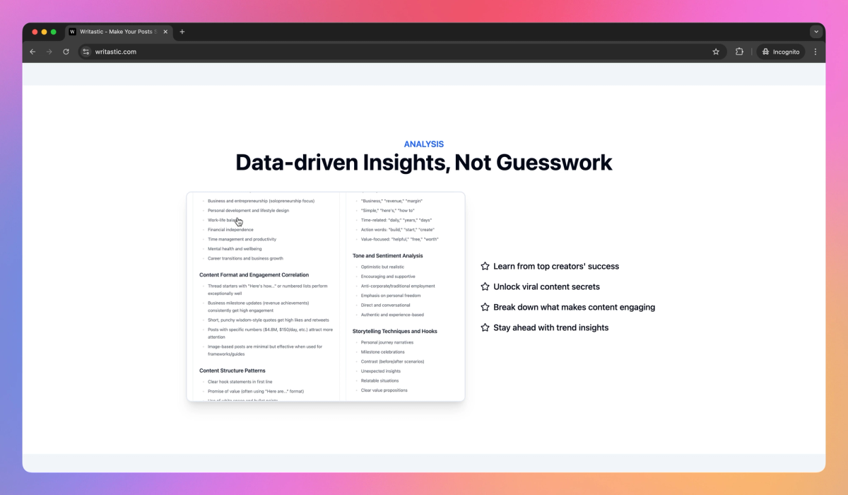 - Learn from data-driven insights that break down successful content strategies from top creators.