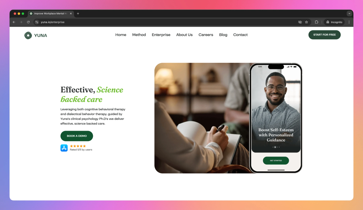Yuna is an AI-guided self-therapy app for individuals seeking affordable mental health support. It offers 24/7 voice conversations, customizes sessions based on your current emotional state, and integrates with iOS Health and Calendar to help reduce stress and improve well-being.