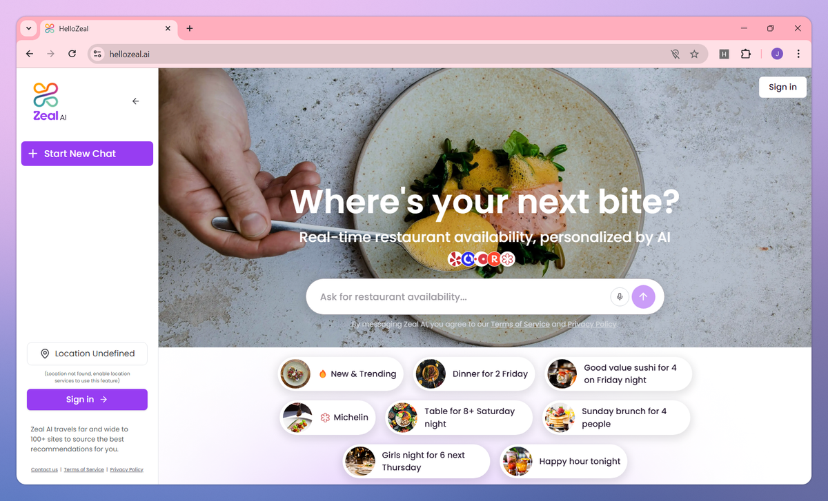 Zeal AI is a restaurant discovery tool that connects food lovers with ideal dining spots. It searches across 100+ websites for restaurant recommendations, filters options by specific dining needs like group size or dietary preferences, and delivers curated information about each venue to help diners make informed decisions.