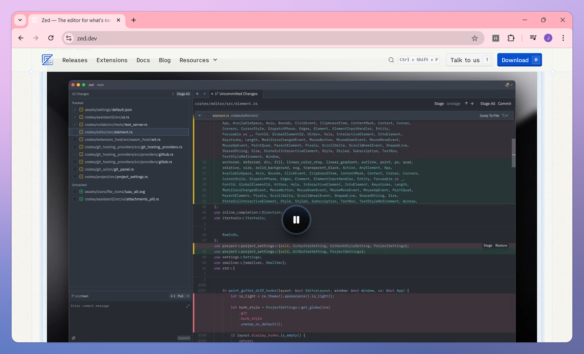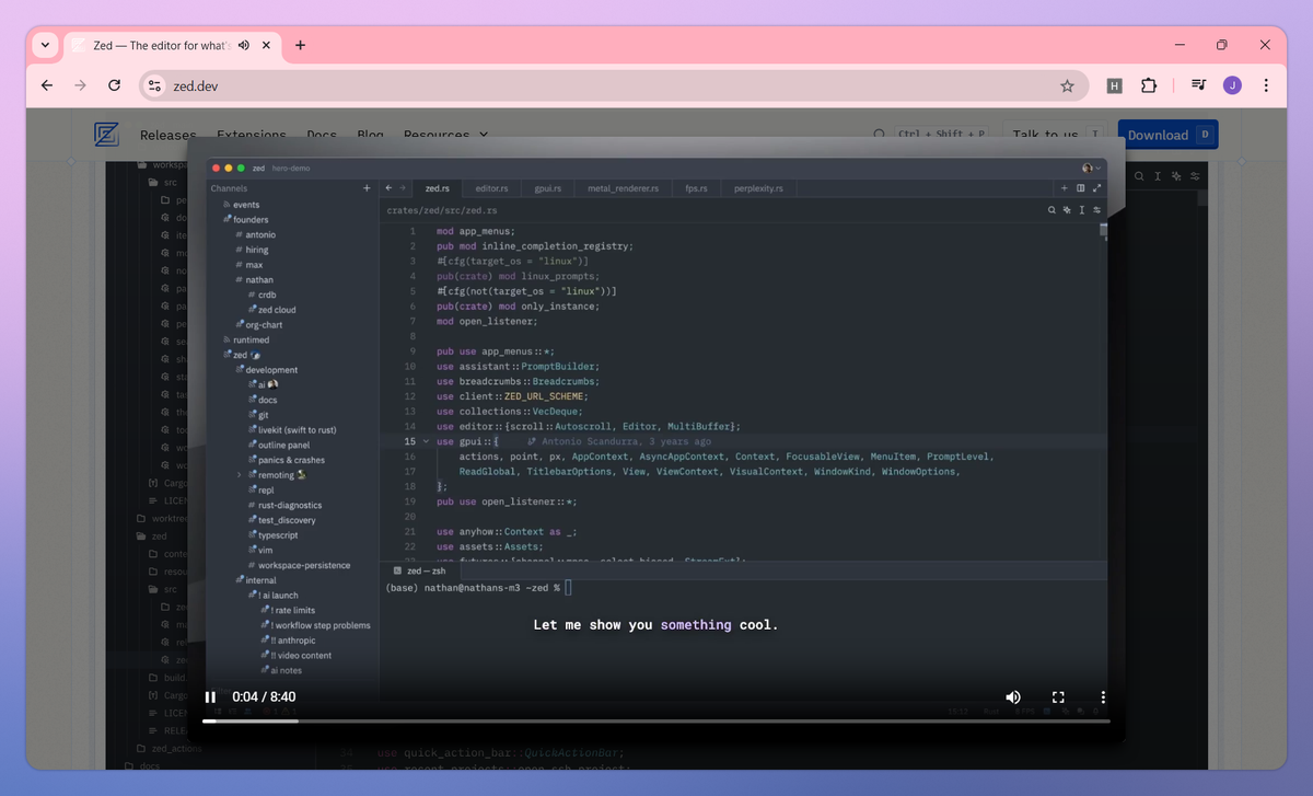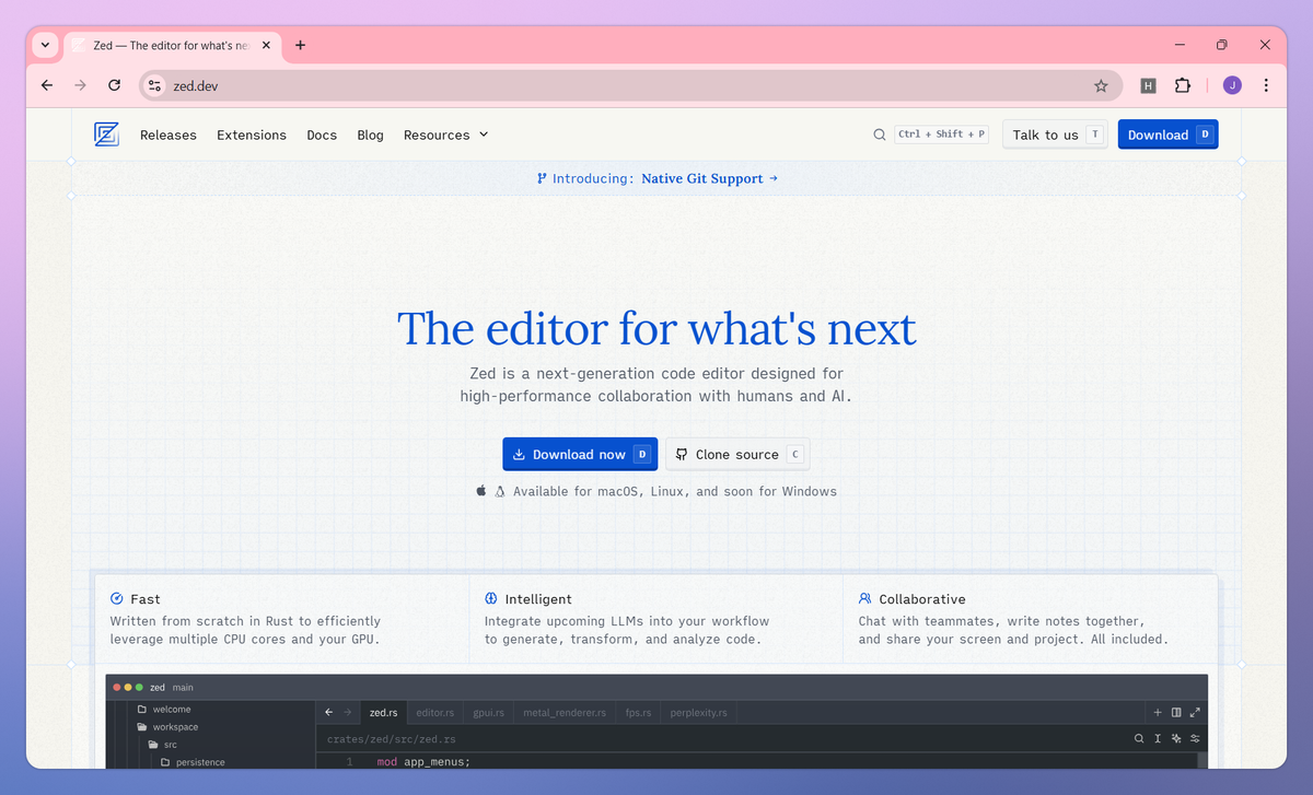 - Code with minimal latency in an editor built from scratch in Rust, leveraging multiple CPU cores and GPU acceleration for responsive typing and navigation.